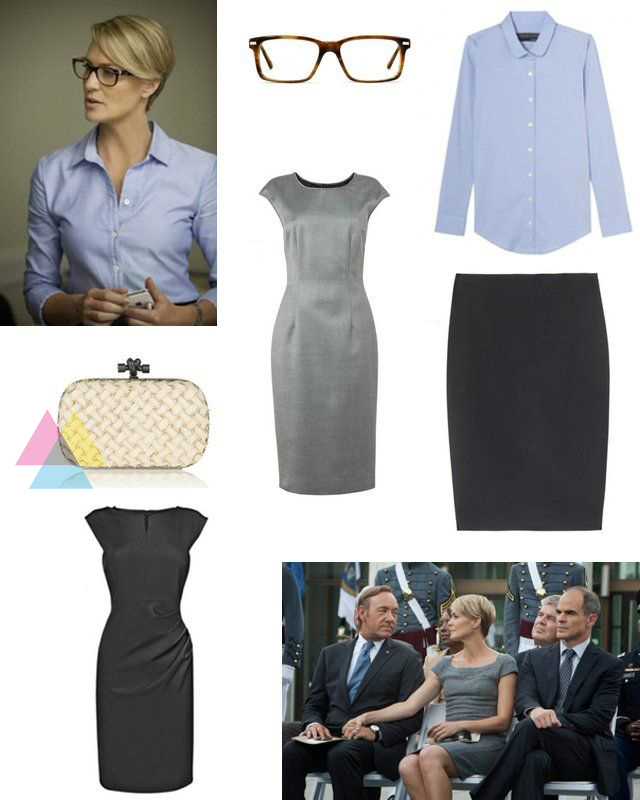 En el caso del personaje de House of Cards, los detalles son mínimos, y por lo general van en los escotes de vestidos o accesorios, casi inexistentes. Los vestidos tubo son el sello del look de Claire, los cuales muestran su bella silueta elegantemente.